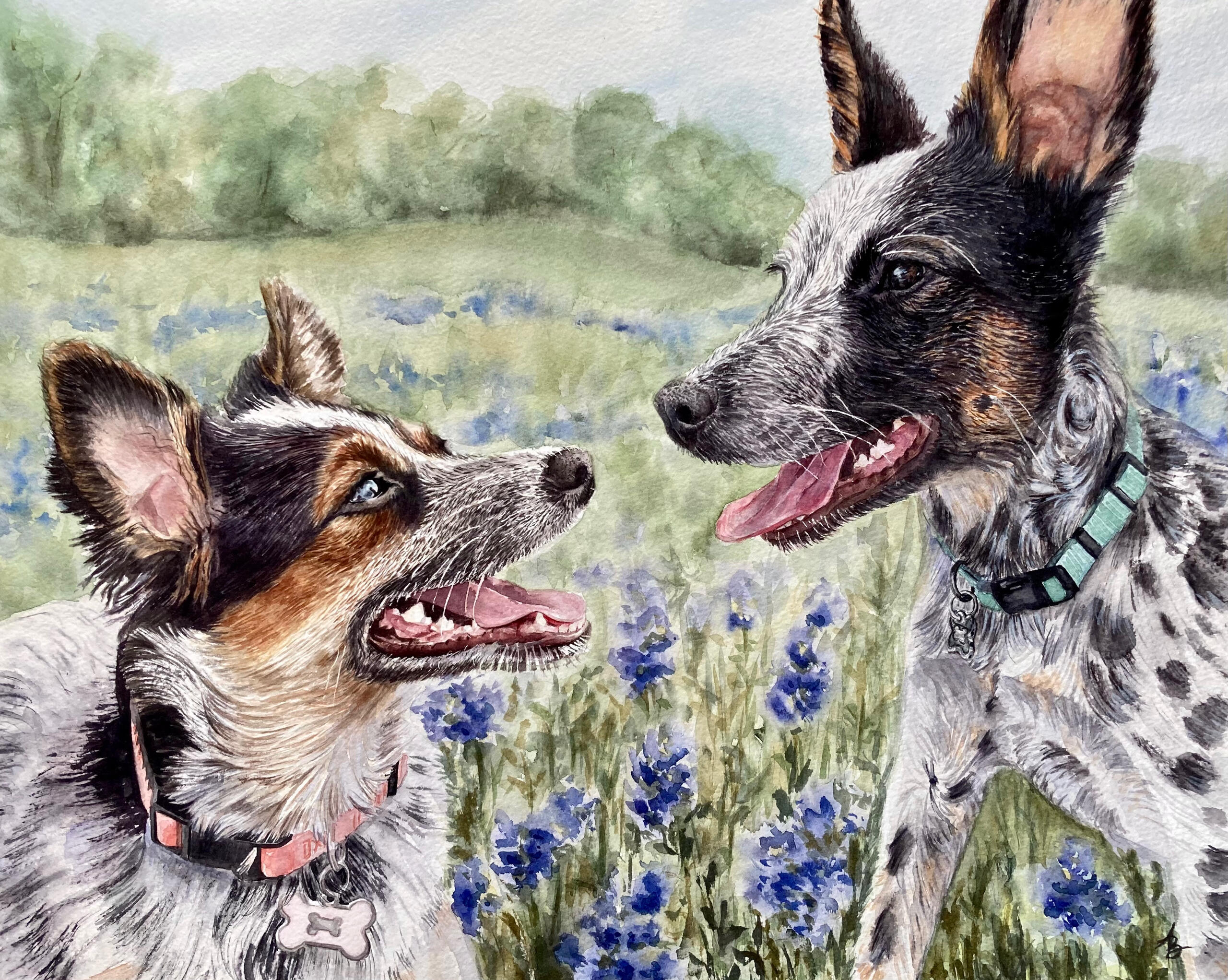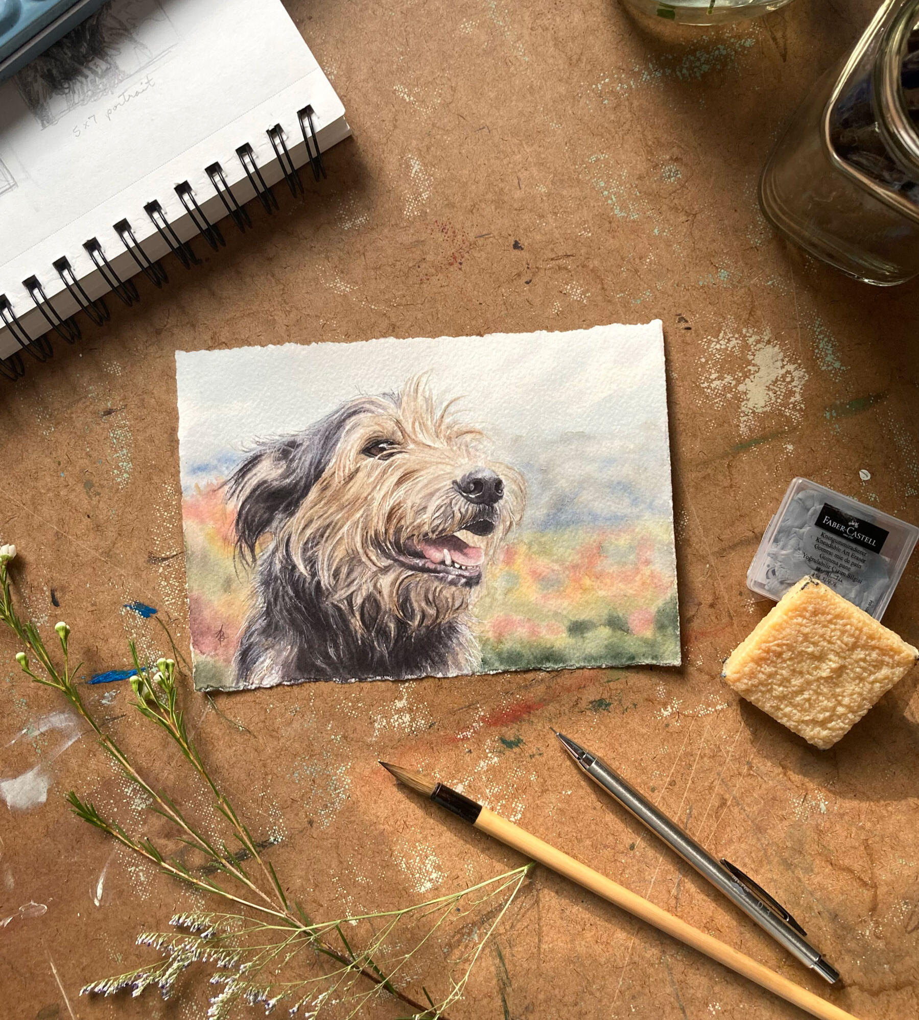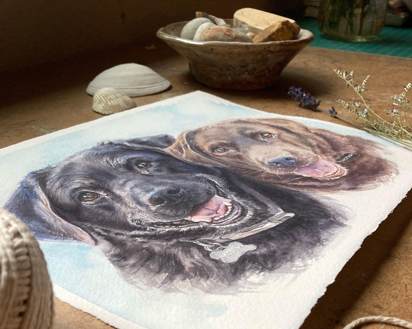 Whether you'd like a small keepsake to remember your gentle old gal or a statement piece brimming with the energy of your family pack, it all starts with your vision. Explore my offerings to see how I can create a portrait you'll treasure.
