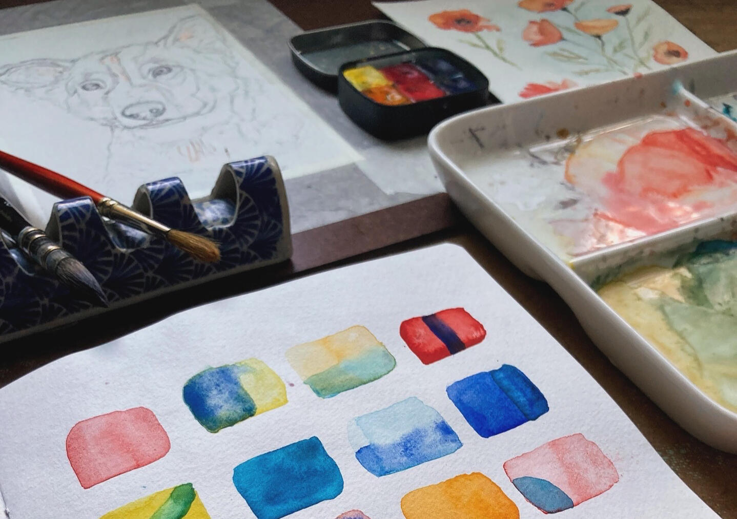 Hey, there! I’m so glad you’re here.I'm Anna, watercolor artist, painter of pets, mother of two dinosaurs, collector of books I’ll read eventually, and former Michigander who thinks that Puget Sound could do with a little less salt.